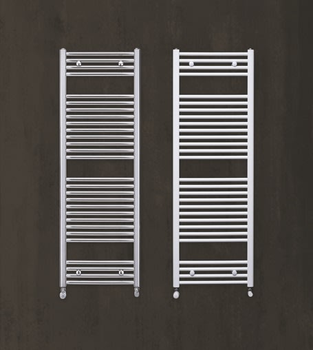 Ampi passi dei tubi e linee diritte. Zehnder Aura è pensato e realizzato per bagni moderni. Il radiatore di design è disponibile in bianco oppure con pregiata finitura cromata.
