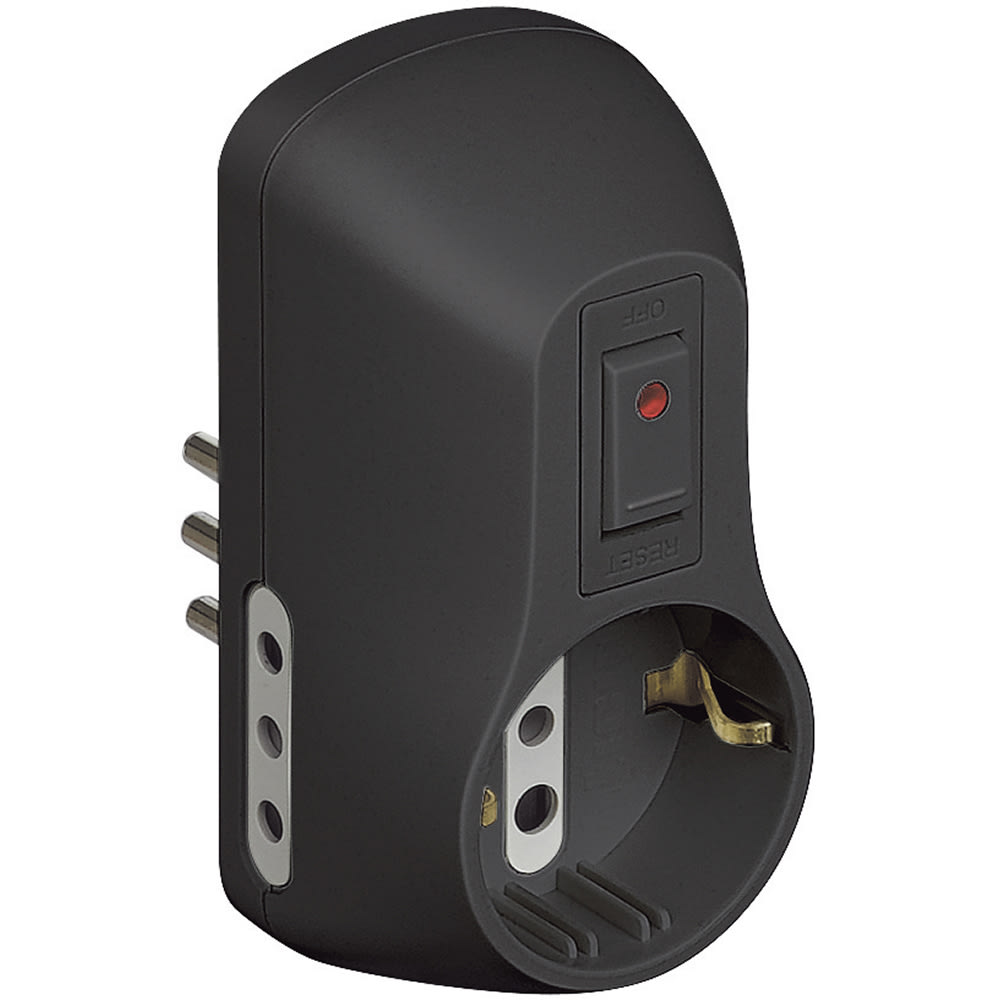 kit - adattatore Safe con 1 presa standard tedesca e 2 prese bipasso (10/16 A), interruttore automatico luminoso grigio